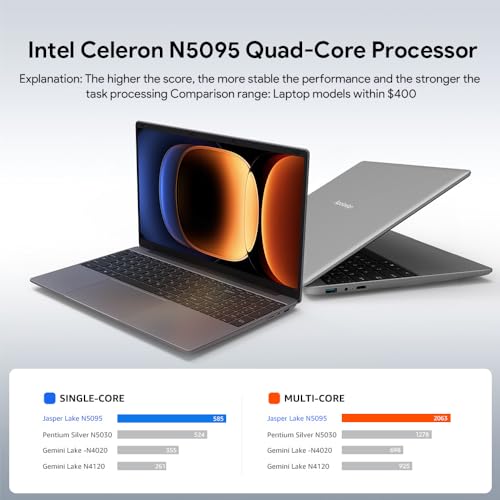 Seamless Performance: The 12GB LPDDR4 RAM and 512GB SSD offer rapid performance for multitasking and multimedia activities. Easily expand storage to 1TB as needed. Powerful Processing: Powered by the Intel Celeron N5095 Processor, reaching speeds up to 2.9GHz, and running Windows 11, this laptop delivers efficient performance for everyday tasks with low energy consumption. Immersive Display: Enjoy stunning visuals on the 15.6-inch Full HD screen. With eye-protection features and a wide 178-degree viewing angle, it's perfect for extended viewing sessions. User-Friendly: Pre-loaded with Windows 11, this laptop is ready for a variety of office, productivity, and entertainment applications, providing a smooth user experience. Portability and Connectivity: Weighing just 1.7kg and only 20mm thin, it's easy to take on the go. Stay connected with Bluetooth 4.2, dual-band WiFi, and multiple ports including Mini HDMI, USB 3.2 Gen1, Type-C, and more.